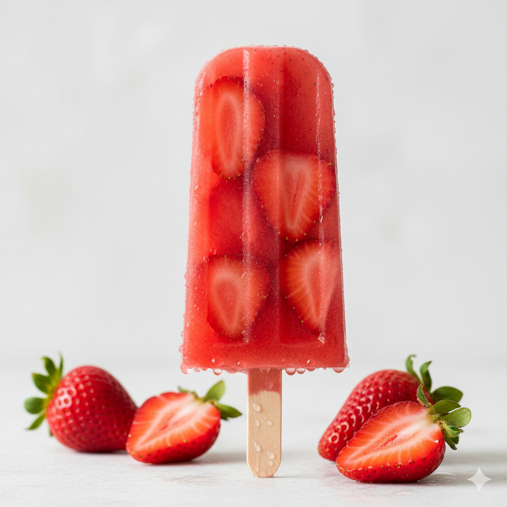 Refrescante paleta hecha con fresas frescas, agua y un toque justo de dulzura. Ideal para un día caluroso.