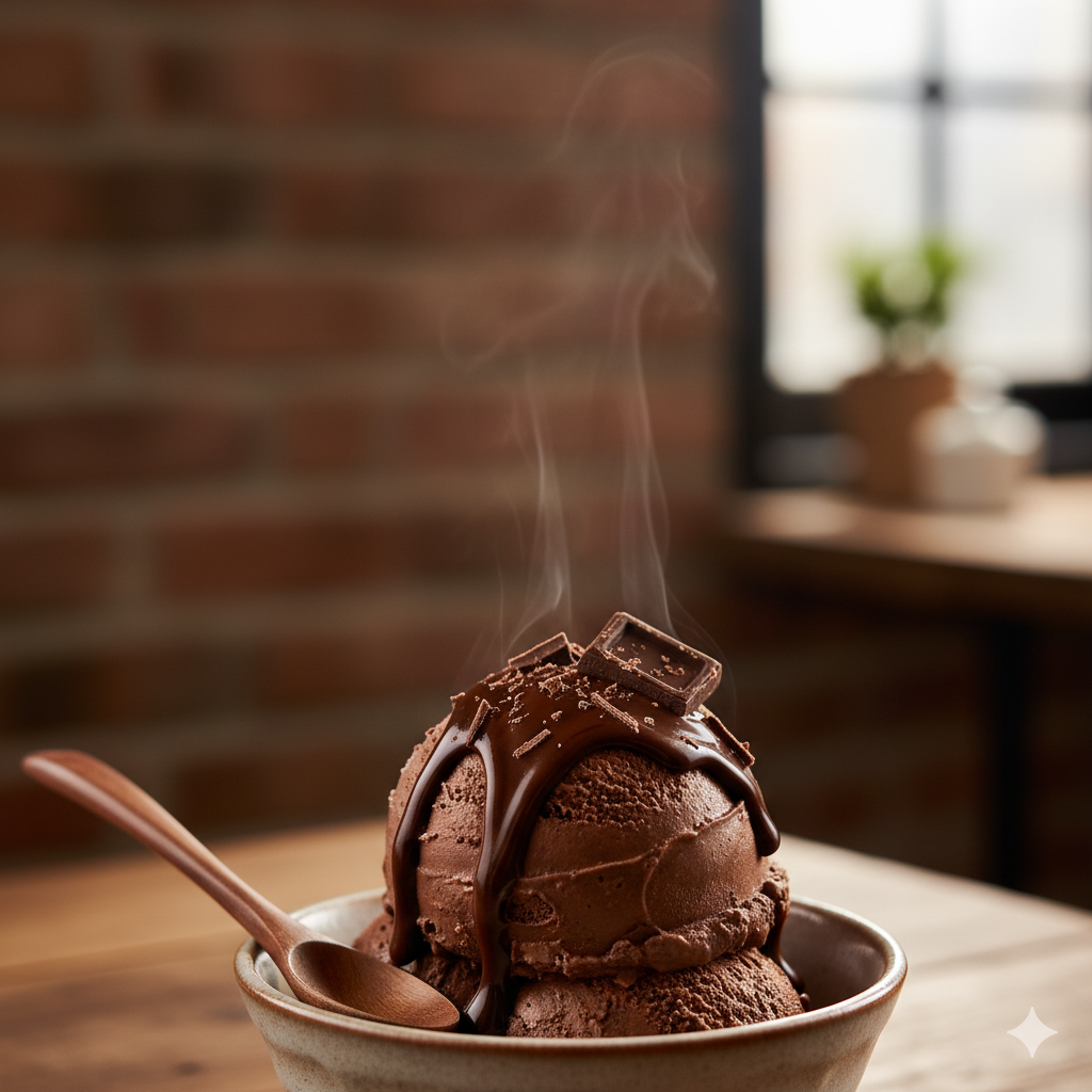 Un helado intensamente rico y suave, elaborado con el más fino chocolate belga, que deleitará a los amantes del cacao.